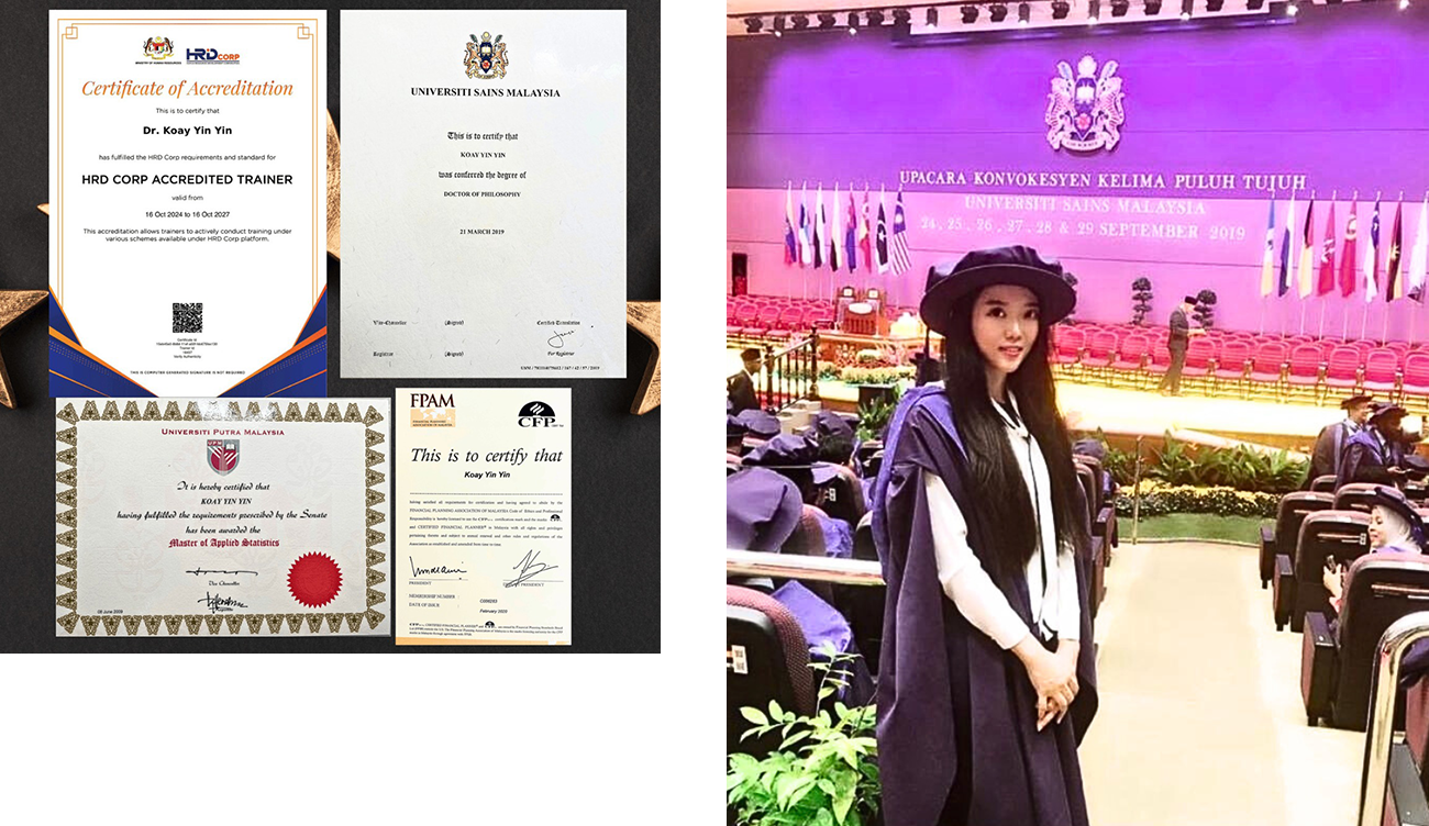 "With a PhD in Quantitative Finance and Applied Mathematics from University Sains Malaysia and a Master’s in Applied Statistics from University Putra Malaysia, I bring extensive expertise in data analysis, financial modeling, and AI-driven decision-making. I also completed the Money & You Program in 2024. My academic background, combined with my certification as an HRD Corp Accredited Trainer (Trainer ID: 18437) and Certified Financial Planner (CFP®) (Membership Number: C006283), enables me to help businesses leverage AI to optimize financial strategies and drive growth. With over two decades of experience in education and consultation, I specialize in transforming data into actionable insights for clients, guiding them toward smarter and more efficient decision-making."